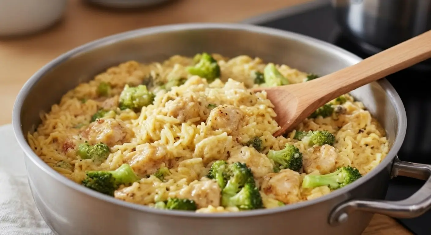 Cheesy Chicken Broccoli Orzo :