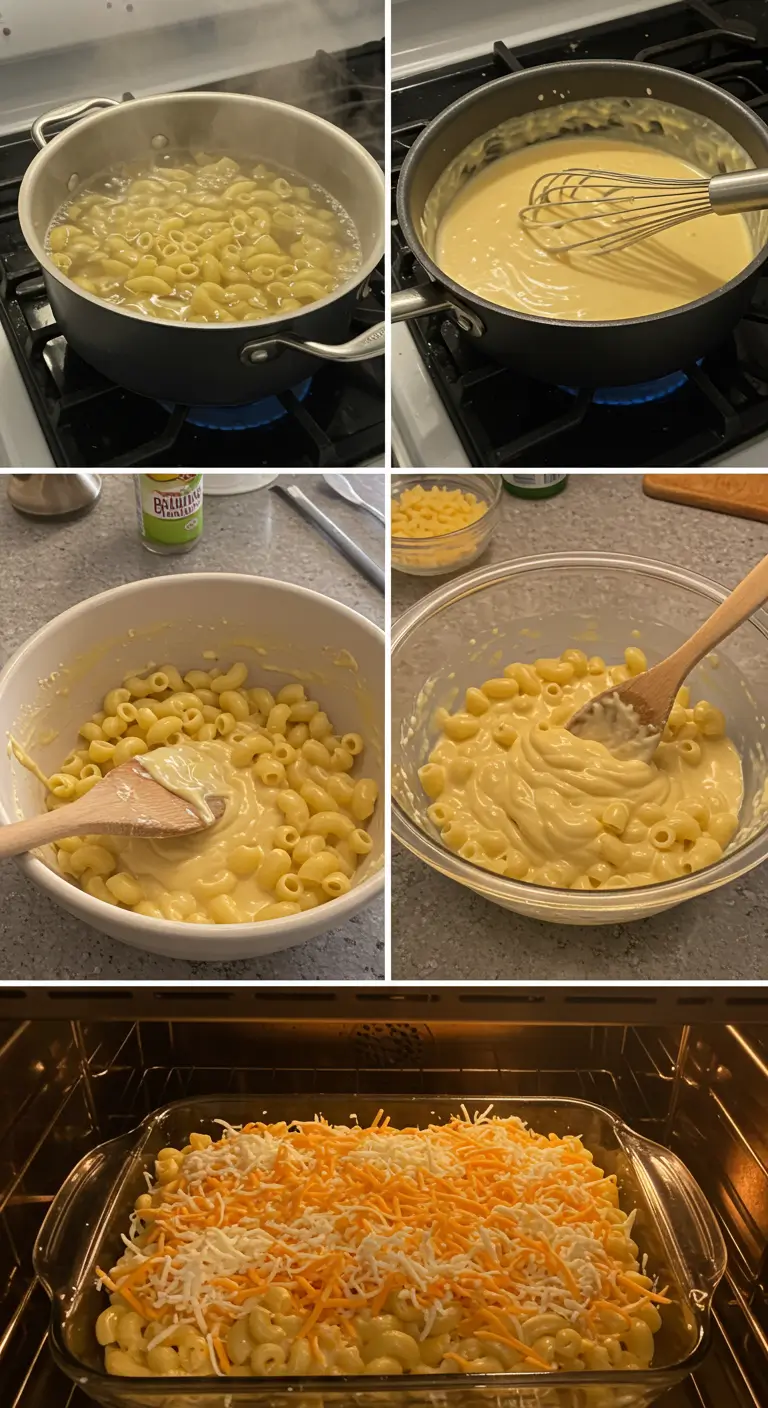 Add cooked pasta to the cheese sauce. Stir gently to coat. If it’s too thick, add a splash of pasta water or milk.
