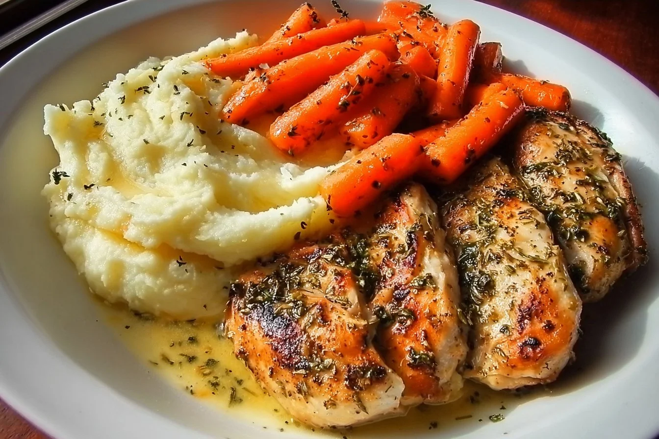 Garlic Herb Chicken with Creamy Mashed Potatoes and Glazed Carrots