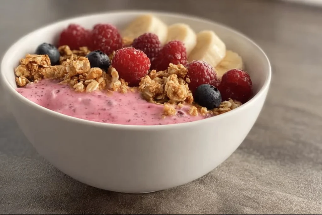 - Protein-Packed: With Greek yogurt and protein powder, this bowl packs a punch in the protein department. Perfect for anyone looking to bulk up or just stay full longer.